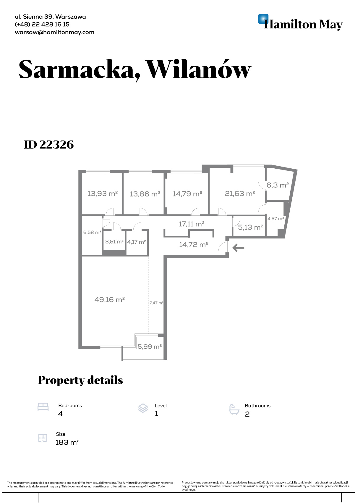 Prezentowana nieruchomość o powierzchni 183 m² to przestronny apartament, który zachwyca układem pomieszczeń i możliwościami aranżacyjnymi.
